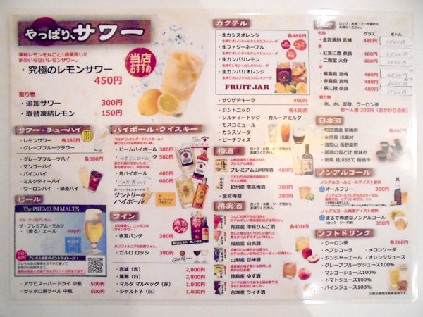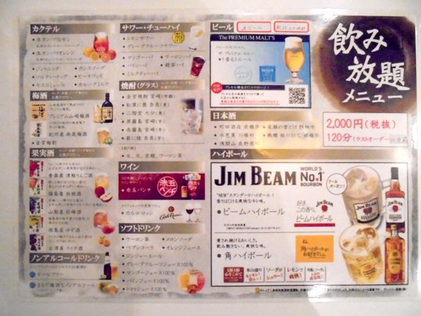 メニューも様々な種類のお酒をご用意しておりますので、時間いっぱいお楽しみ頂けます。